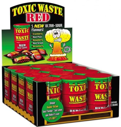 Американские Toxic Waste Candy – бочка запретных конфет. Производитель из США прославился изготовлением особенно взрывных сладостей с известным на весь мир лозунгом «Токсичные отходы». Кислые леденцы Toxic Waste любят дети.