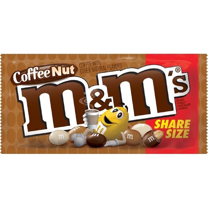 Драже M&M's Coffee nut 92.7 гр - шоколадное драже с кофейной начинкой от мирового производителя всем известных конфет M&M's. Конфеты с жареным арахисом, настоящим молочным шоколадом с неотразимым кофейным вкусом в разноцветной конфетной оболочке - это арахисовые шоколадные конфеты M&M's. Упаковка лакомства имеет старую форму: 92 грамма сладостей в прямоугольной пачке. Но теперь её окрас стал коричнево-кофейным с изображением героя рекламы, распивающего кофе!