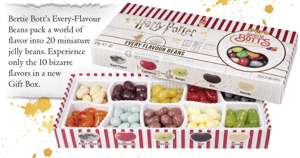 Супер-популярные конфеты в картонной коробочке - любимое лакомство учеников Хогвардс драже Берти Боттс с неожиданными вкусами: