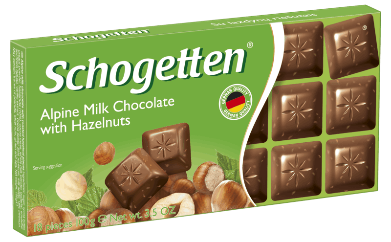 "Schogetten"— молочный шоколад, который не нужно ломать. Лакомство в картонной упаковке поделено на квадратики, которые удобно употреблять с чашечкой горячего напитка. Шоколад удивляет своим интенсивным, но естественным ароматом. Его мягкий вкус объясняется добавлением цельного альпийского сухого молока, а насыщенность придает 30% содержание бобов какао.