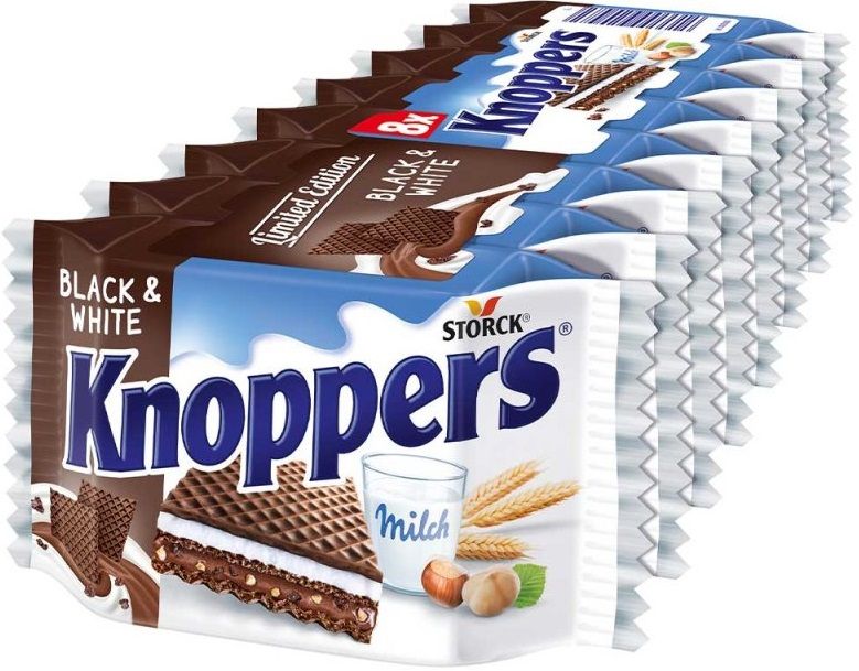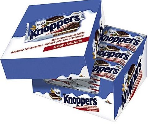 Вафли Knoppers – хрустящие вафли от компании Storck с начинками из восхитительного молока и нежной крем-нуги с добавлением обжаренных лесных орехов. Это легкое и не слишком сладкое лакомство – просто идеально для быстрых перекусов, в которых человек нуждается в течение дня.