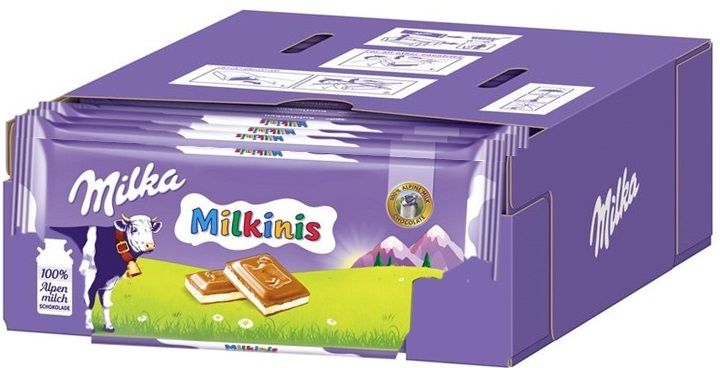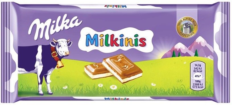 Молочный шоколад «Милкинис» от Milka с молочной начинкой - вкусный десерт, приготовленный из нежного альпийского шоколада с ванильным сливочно-молочным кремом. Лакомство состоит из небольших плиток, завернутых в отдельную обертку. В состав паста из фундука, которая придает легкие ореховые нотки. Шоколад станет отличным перекусом во время работы или прогулки.
