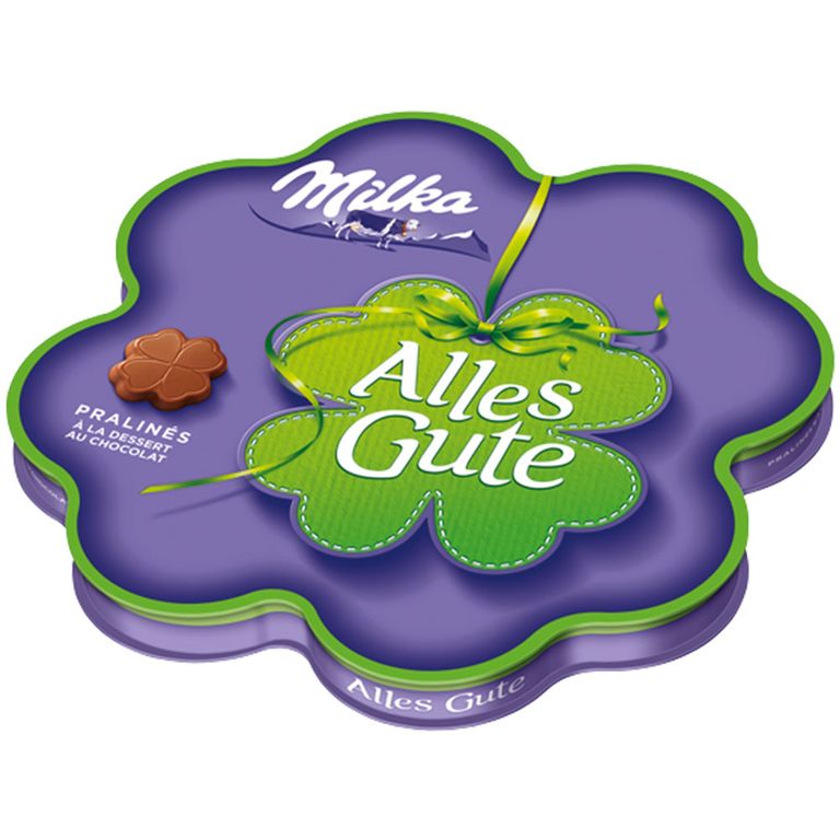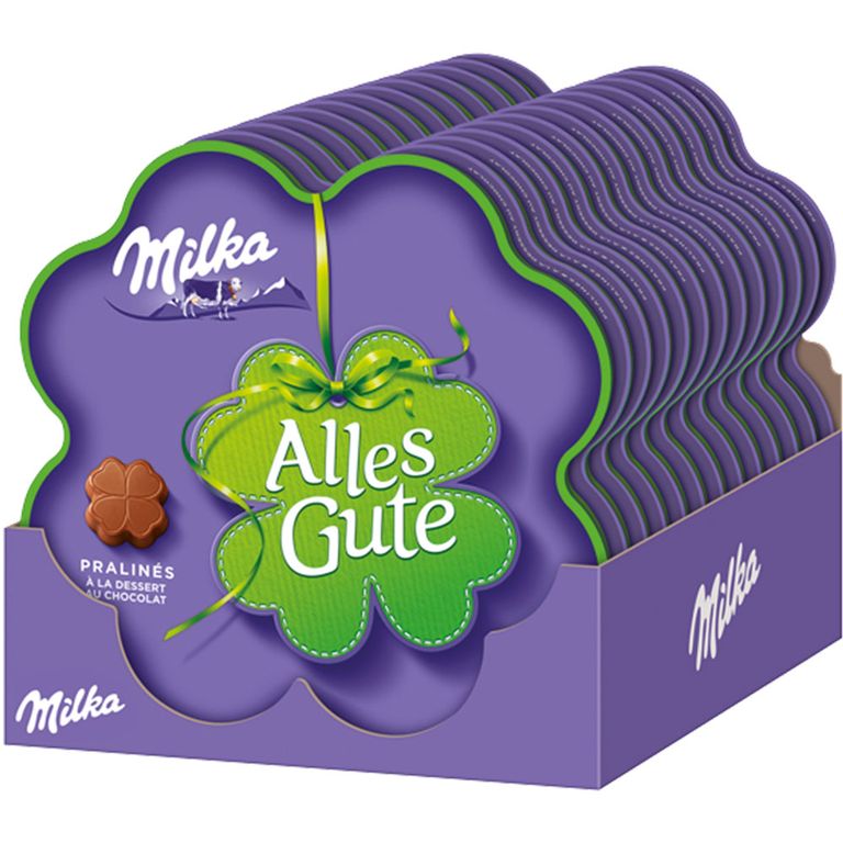 Milka 'I Love Milka' крем с пралине из лесного ореха 110г Подарочная упаковка с 20 пралине из альпийского молочного шоколада в форме сердца с кремовой начинкой из лесных орехов и нуги